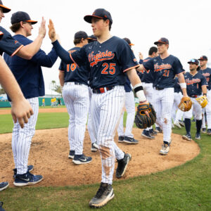Virginia split a pair with No. 8 North Carolina, taking game one by a score of 9-2 before falling 8-7 in 12 innings during the nightcap.
