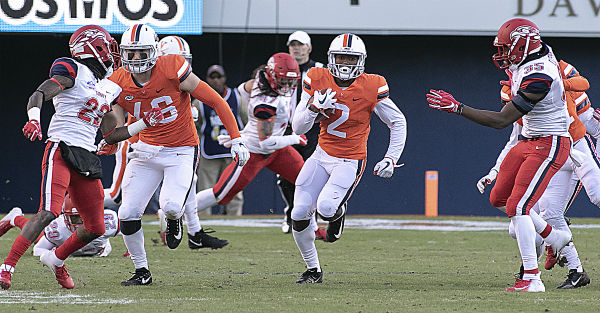 He received the ball at his own 10 and made his move, racing down the home sideline 90 yards for six to extend the Cavaliers’ lead and providing a huge jolt of momentum right out of the locker room.