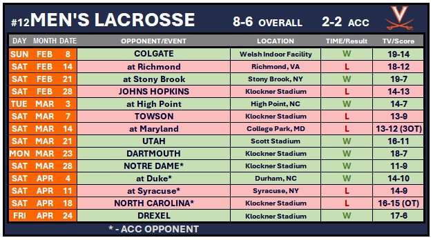 - UVA finished the regular season with a winning record of 8-6.
