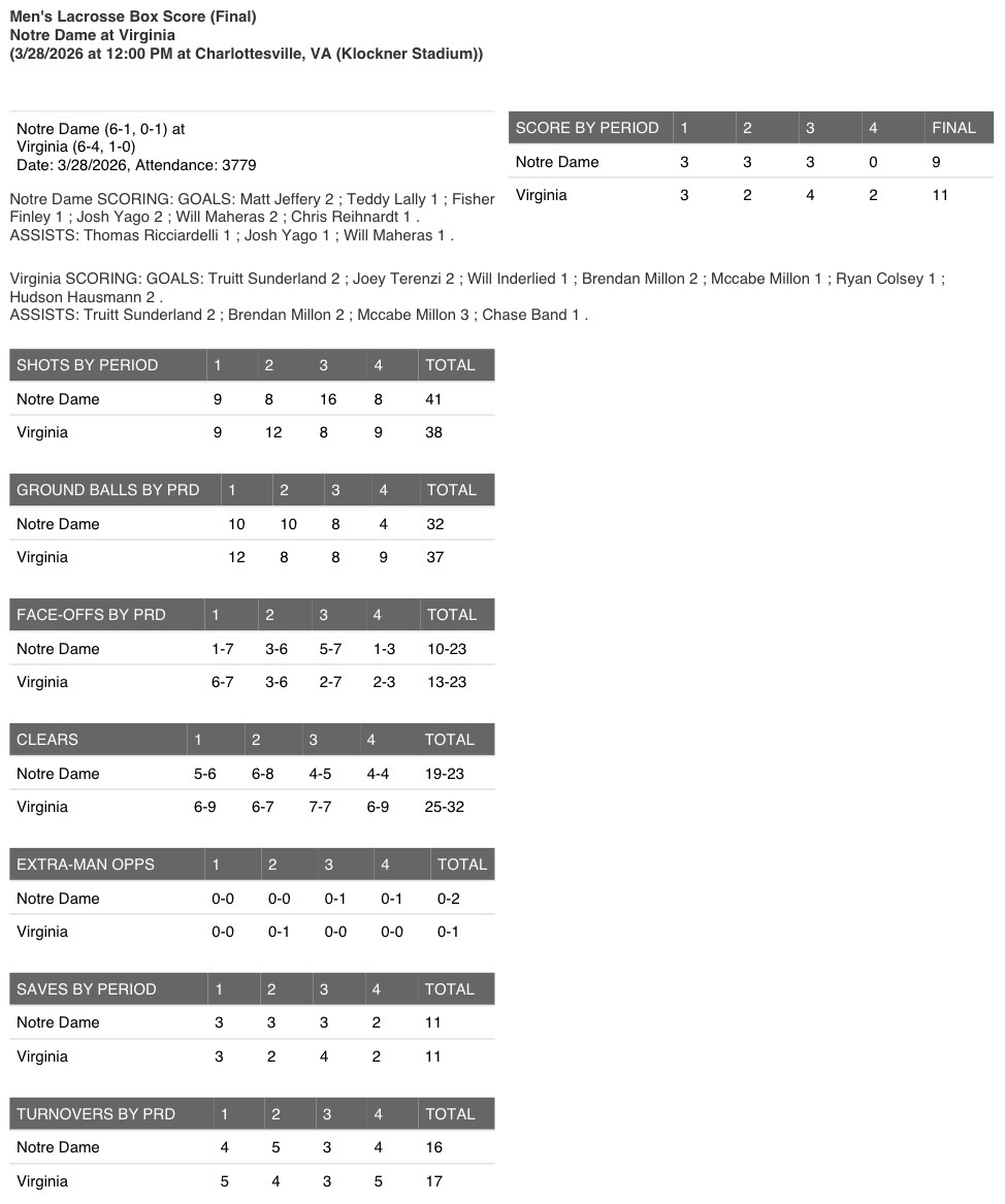 - The Cavaliers snapped a four-game skid in the series with Notre Dame, dating back to UVA’s heartbreaking 13-12 overtime loss at the 2023 NCAA Tournament semifinals at Lincoln Financial Field (Philadelphia).