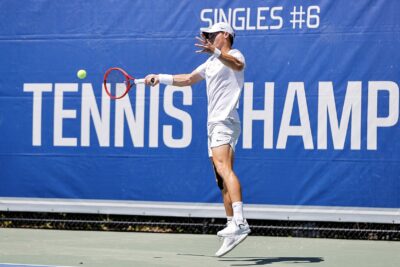 With the remaining three matches all requiring third sets, two of which saw the Cavaliers battle back from dropped first sets, Cal reached the three-point mark first with a win on court three. However, No. 15 Keegan Rice promptly responded with a 2-6, 7-5, 6-3 win on two to tie the match for UVA.