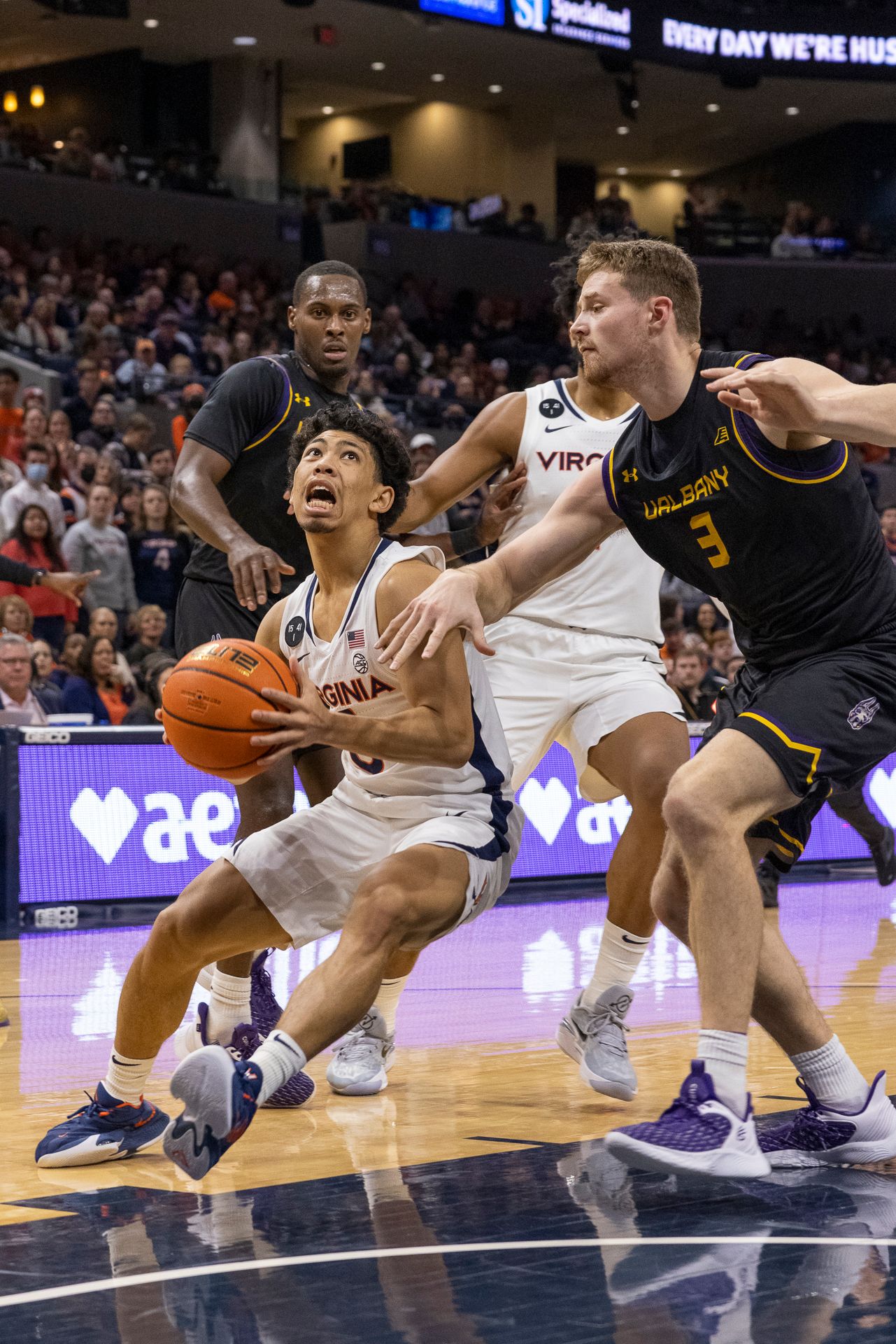 Photos from Wednesday’s Virginia-Albany game at John Paul Jones Arena, shot by JerryRatcliffe.com photographer Jon Golden. Click to enlarge any photo.