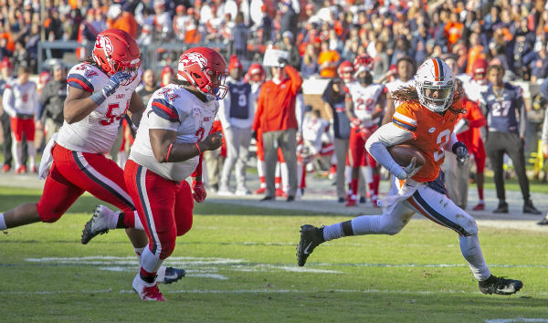 Junior wideout Joe Reed scored three touchdowns in his final game at Scott Stadium Saturday, as Virginia won its seventh game of the season for the first time since 2011 with a 45-24 victory over Liberty, the first meeting between the in-state opponents.