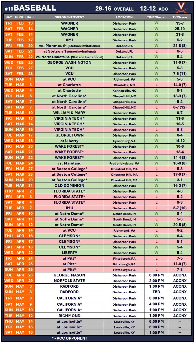 • Pitt is the first ACC team to sweep UVA in a three-game series on the road since Notre Dame in 2023.