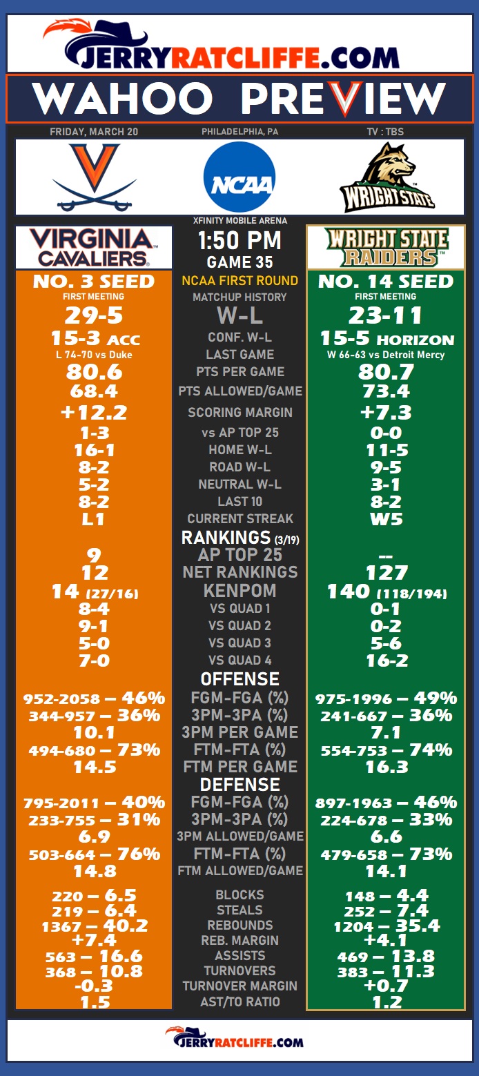 With Virginia’s recent history in the NCAA Tournament and with Ryan Odom’s experience in terms of upsets, the No. 3-seeded Cavaliers are taking nothing for granted heading into Friday’s game against No. 14 seed Wright State (1:50 p.m., TBS).