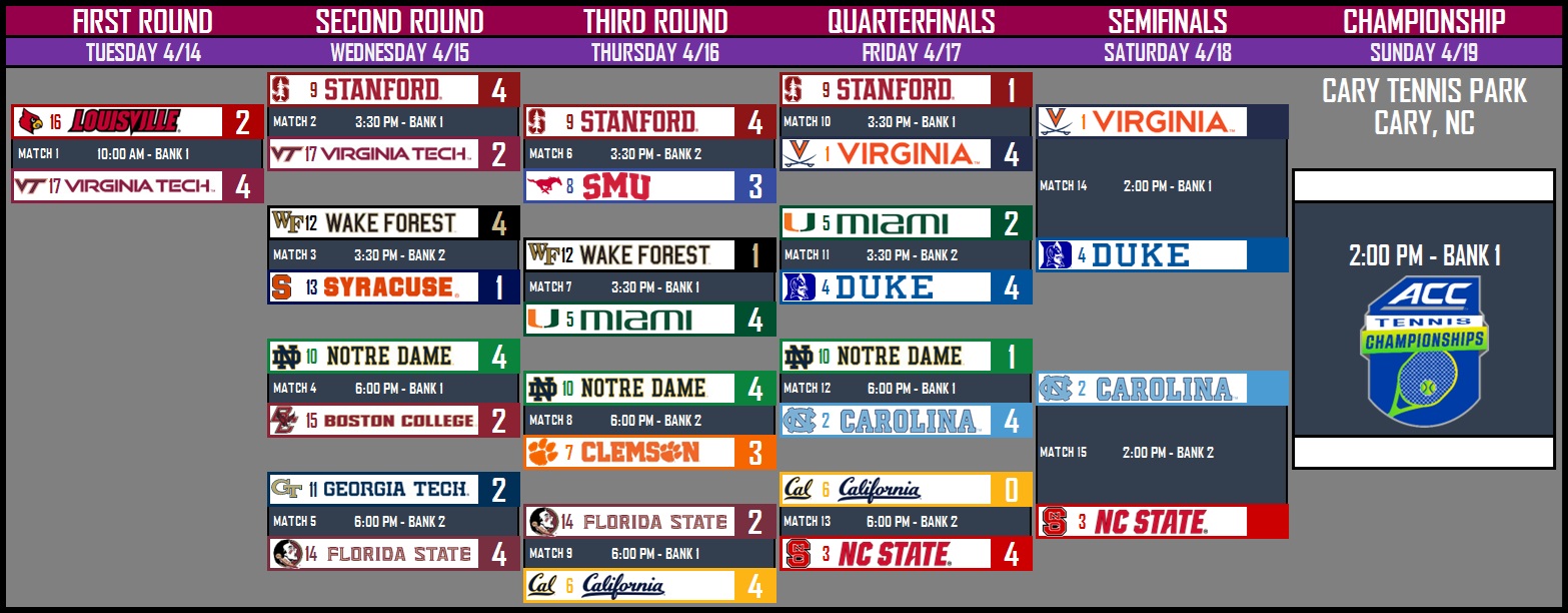 The top-seeded Cavaliers (20-4) advance to the semifinals, where they’ll face fourth-seeded Duke at 2 p.m. Saturday (see full bracket below).